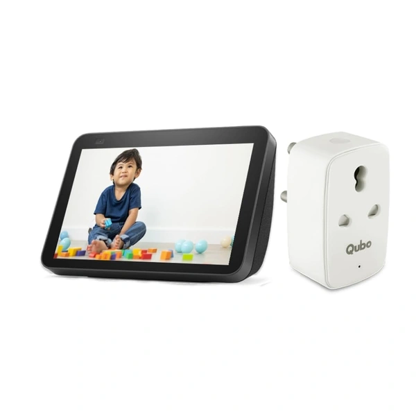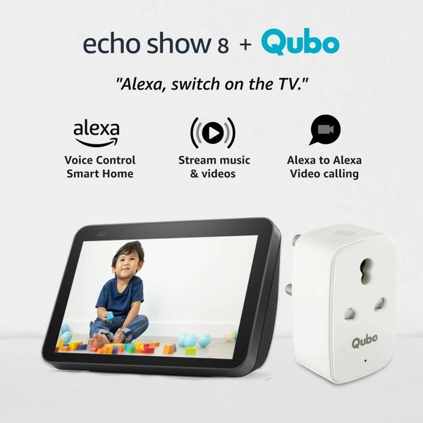 Amazon Echo Show 8 (2nd Gen) Black with QUBO 16A Wifi + Bluetooth Smart Plug with Alexa