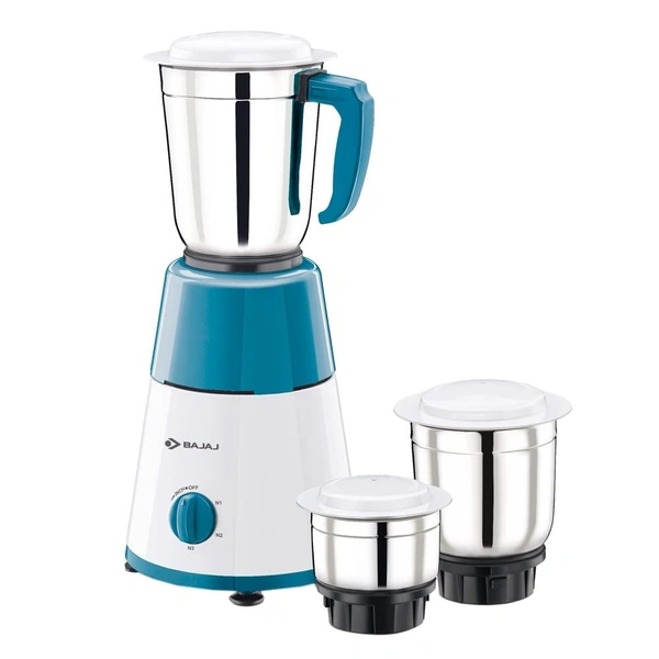 Bajaj GX15 500 Watts Mixer Grinder | Multi-Functional Blade System | 3 Sturdy Stainless Steel Jars 【White & Blue】