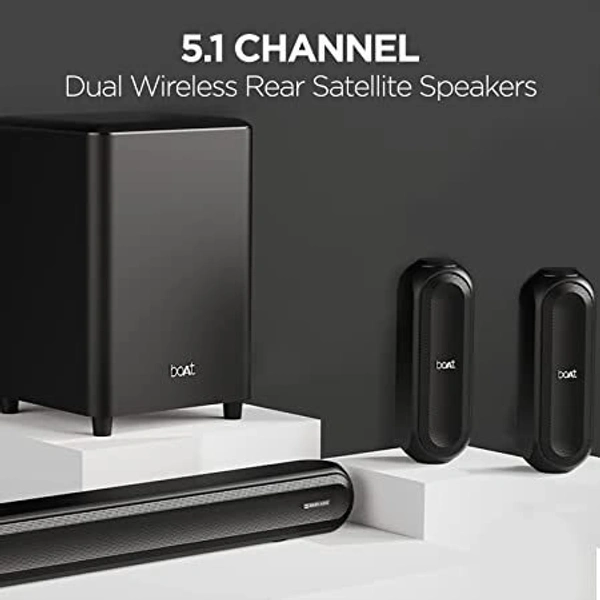 boAt Aavante Bar 3200D 5.1 Channel Soundbar with Powerful Subwoofer, 3D Surround Sound and Dolby Audio, Dual Wireless Rear Satellite Speakers, Multiple Connectivity Modes