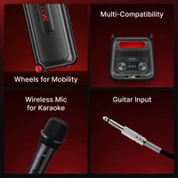 - Multi-Compatibility (BT v5.3, AUX, TF Card, USB, 2x Wired Mics): Jam to your favorite tunes with this speaker however you want to. Connect up to two more wired mics separately, or choose one of the multiple connectivity options like wireless Bluetooth v5.3 connectivity, TF card, AUX port, or USB port.
