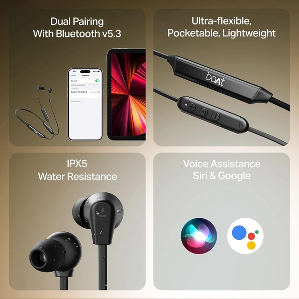 IP Rating- This Bluetooth neckband is equipped with IPX5 making it sweat & splash resistant