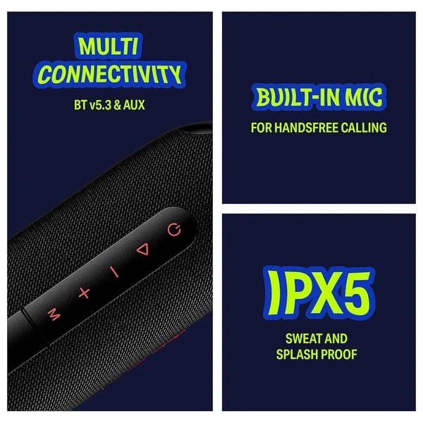 - Inbuilt Mic: Don’t miss out on calls even when your phone is out of reach. Converse hands-free as this speaker boasts a built-in mic for your convenience.