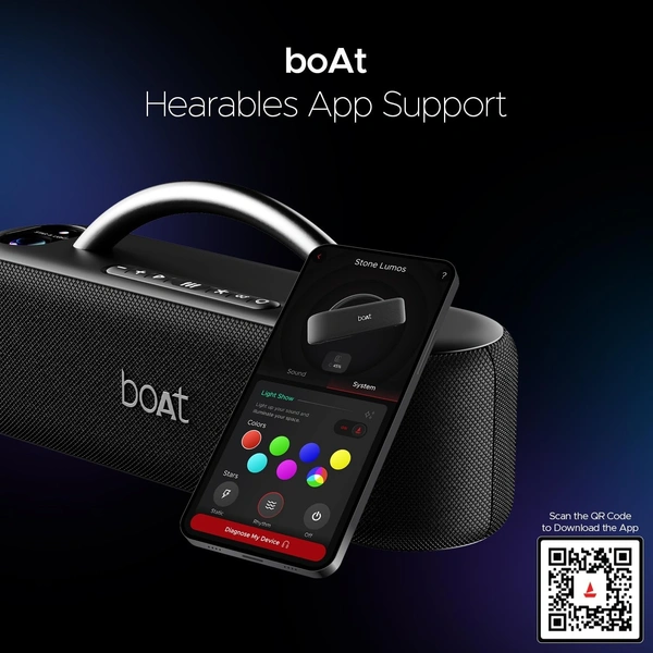 - boAt Hearables App Support: Stone Lumos features boAt Hearables app compatibility that brings innovative controls to your fingertips. Just tap to select your preferred EQ mode for heightened audio relaxation or recreate starry nights in the comfort of your home by combining the light projection with an eye-catching star effect.
