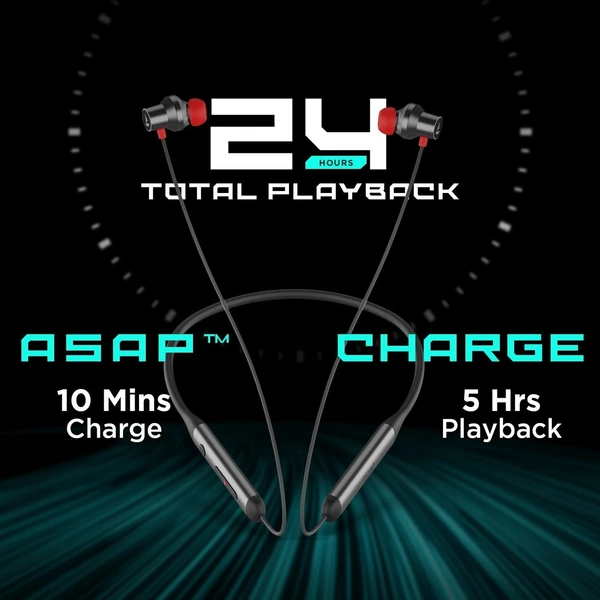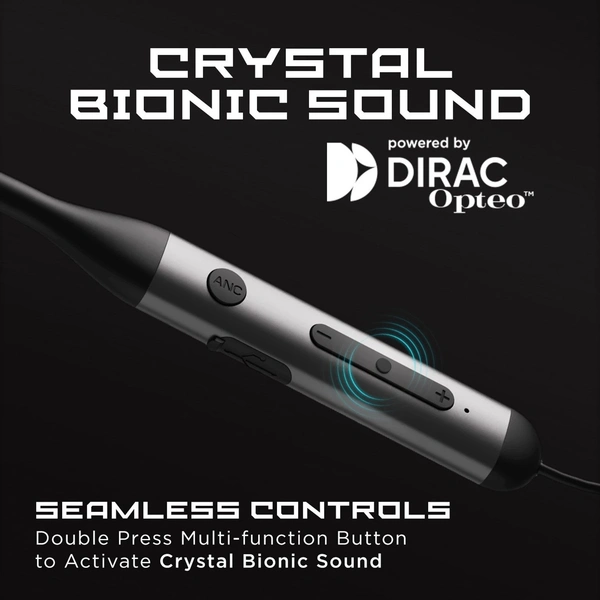 Tune into the future of audio with Rockerz 333ANC wireless neckband that introduces our Crystal Bionic Sound. Crystal Bionic Sound technology delivers a high quality, transparent and crisp auditory experience. Being equipped with Active Noise Cancellation technology, this neckband offers up to 25dB noise cancellation so that you can stay in your zone without interruptions. It offers a total playback time of up to 24HRS. It even has ASAP Charge technology that helps the neckband garner up to 5 hours of playtime in just 10 minutes of charging. With our default ENx tech meant for environmental noise cancellation, you can be heard crystal clear across voice calls; so, taking an important call is not going to be an issue even while you are on the go. While travelling or hitting the gym, stay unperturbed by sweat or drizzle for it is IPX4 rated for water resistance. It's time to move to the Sound That Matters with Rockerz 333ANC!