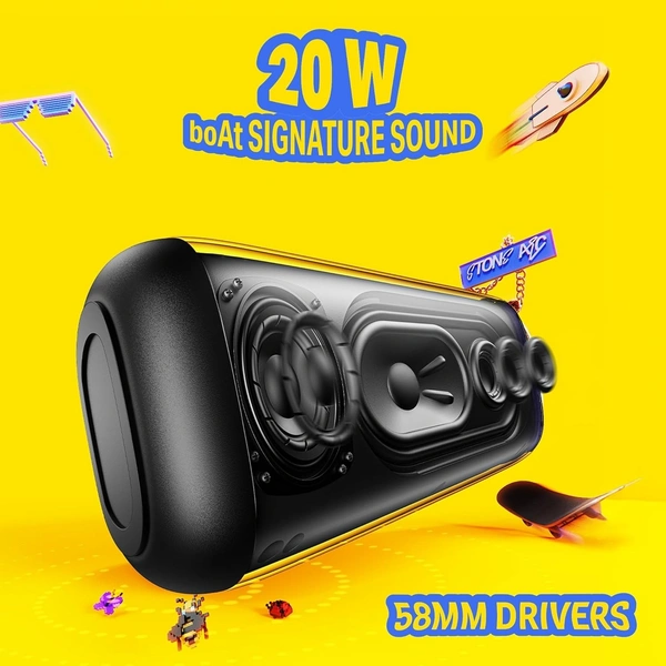 - 20W boAt Signature Sound: Get ready to feel every beat with 20W RMS bass-heavy boAt Signature Sound. By creating a deep, rich audio experience, this speaker pulls you right into the rhythm.