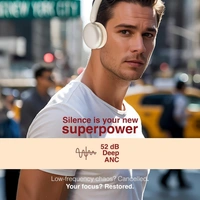 FINGERS 3D-Trance ANC Wireless Headphones (52 dB Deep Active Noise Cancellation, 360° Spatial Sound, 120 Hrs Playtime, 40ms Low Latency, Multi-Point Pairing, Premium Zip Case Bundled), Pearly Gold