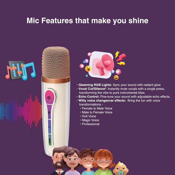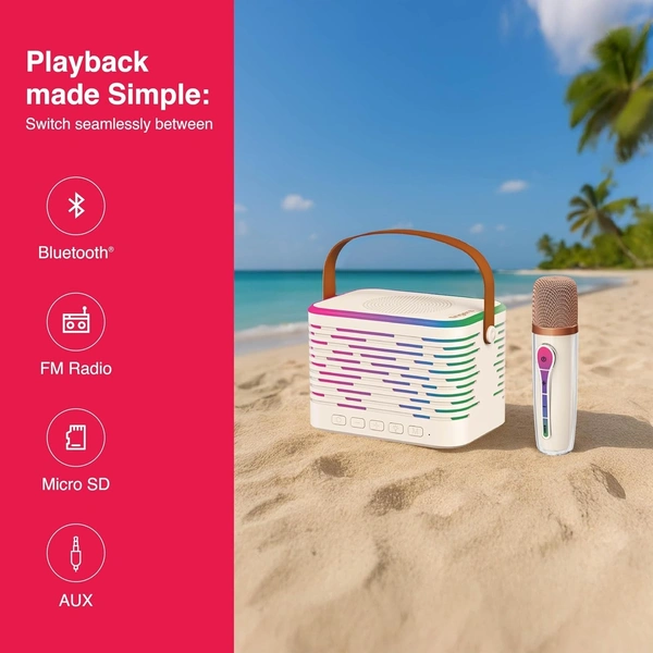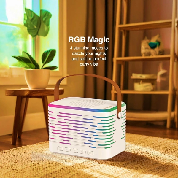 FINGERS KaraokeStar-K4 Portable Speaker with Wireless Mic (12 W Peak Output, RGB Lights on Both Speaker & Mic, 9-Hour Playtime, Bluetooth | FM Radio | MicroSD | AUX, Multi-Point Pairing), Rich White