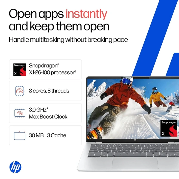 - 【Snapdragon X Plus Processor for Performance on the Move】 Stay productive wherever you go with the Snapdragon X processor offering 8 cores, 8 threads, and 12 MB L3 cache for responsive multitasking, and up to 47 TOPS of NPU power.