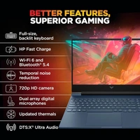 - Other Features: Camera: HP True Vision 720p HD camera with temporal noise reduction and Integrated dual array digital microphones| Keyboard: Full-size, backlit, performance blue opaque keyboard with numeric keypad| Audio: DTS:X Ultra;Dual speakers;HP Audio Boos