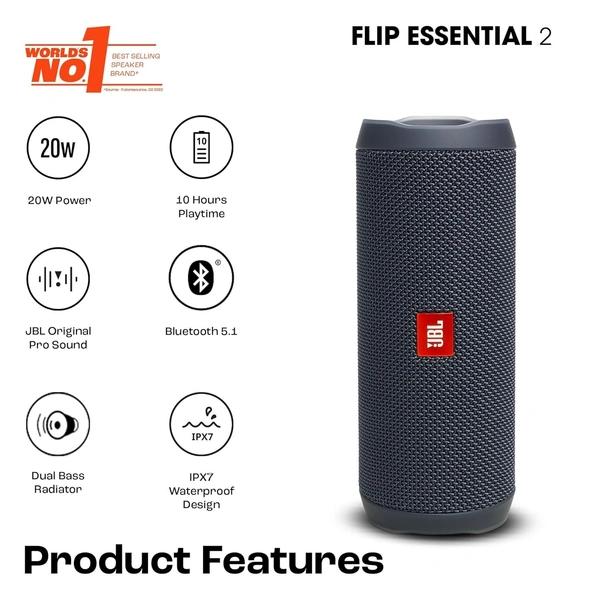 JBL Flip Essential 2, Wireless Portable Bluetooth Speaker with Deep Base, IPX7 Water & Dustproo