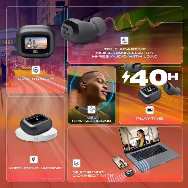 JBL New Launch Live Buds 3 TWS,Hi-Res Audio True ANC Earbuds,Smart Case with Touch Display,40H Playtime,Wireless Charging, 6 Mic,Multipoint Connection,IP55 Proof, Headphones App,Personi-Fi 3.0