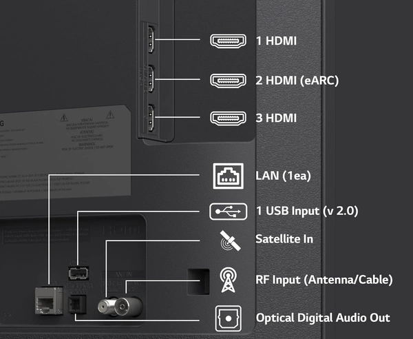 - Smart TV Features: ALLM (Auto Low Latency Mode) | WebOS 25 |Intelligent Voice Recognition (with LG ThinQ app) | AI Chatbot | Works with Hey Google | LG ThinQ /Hub | Google Home / Hub | Works with Apple Airplay| 2 GB RAM | 8 GB ROM | 125+ Free LG Channels | Supported Apps: Prime Video, Netflix, JioHotstar, Sony Liv, Zee5, Apple TV and more | Energy Rating: 2 Star | Annual Energy Consumption: 204.55* kWh/year