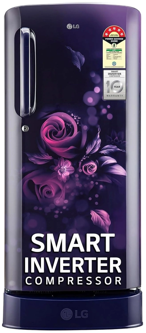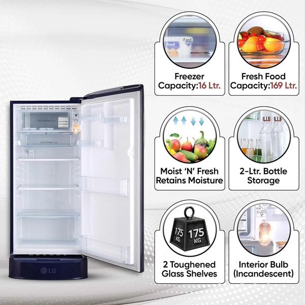 LG 185 L 5 Star Inverter Direct-Cool Single Door Refrigerator (GL-D201ABEU, Blue Euphoria, Base stand with drawer)