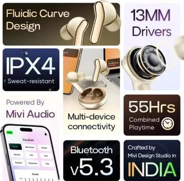 Mivi DuoPods i6 TWS, Engineered for Athletes, IPX 4.0,13mm Bass, 55+H Playtime Bluetooth BT v5.3, Made in India Earbuds (Beige, True Wireless)