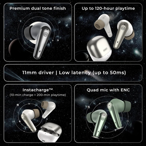 Noise Buds X Prime in-Ear Truly Wireless Earbuds with 120H of Playtime, Quad Mic with ENC, Instacharge(10 min=200 min), Premium Dual Tone Finish, 11mm Driver, Bluetooth v5.3