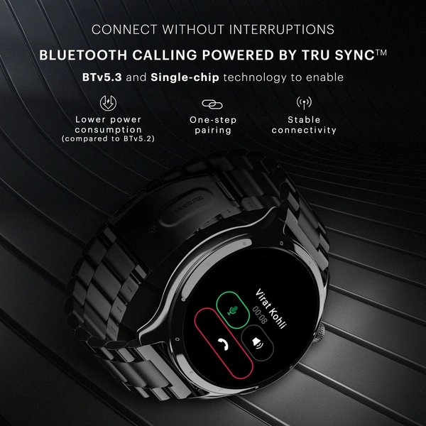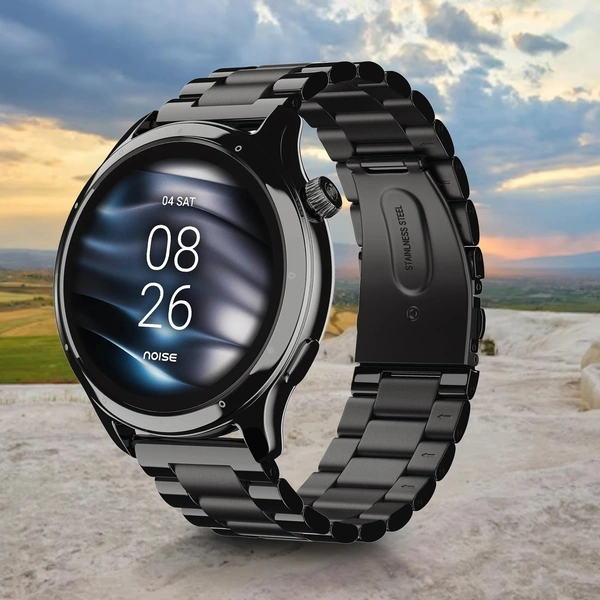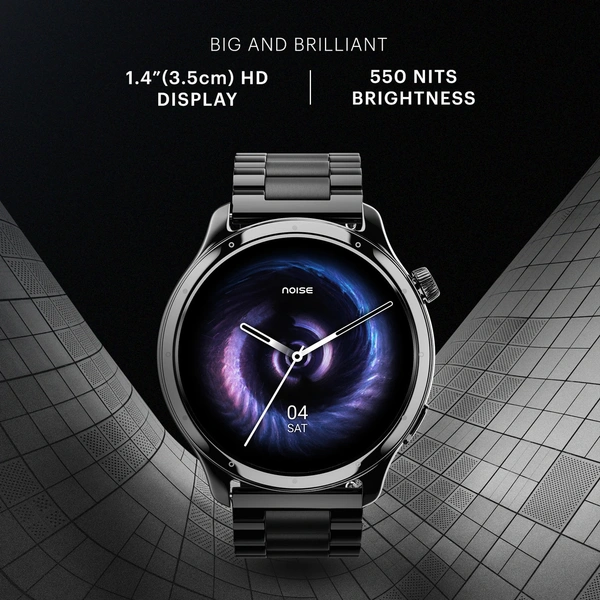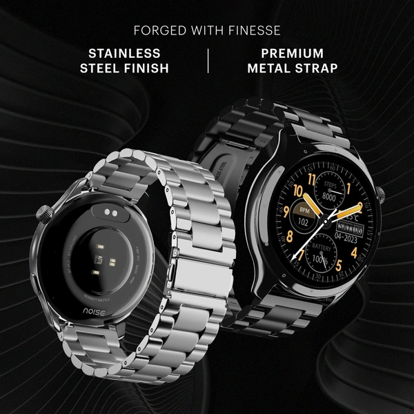 Noise Mettle 1.4'' display, Stainless Steel finish with Metal Strap, Bluetooth Calling Smartwatch (Elite Black Strap, Regular)