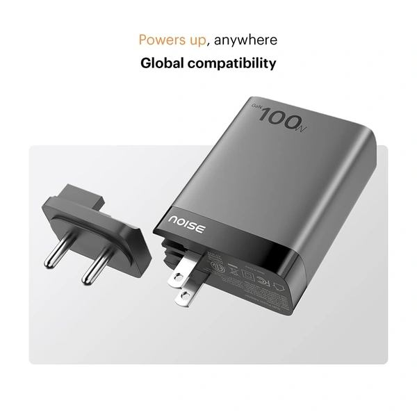 Noise Power Series 100W GaN Charger: Fast Charging Adapter, 4 Ports (3 USB-C + 1 USB-A), Globally Compatible, iPhone 0 to 50% in 27mins, Supports All iPhones, Android Phones, Laptops, Macbooks (Black)