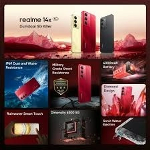 - ☆【Ultra-Durable IP69 Certification】:- Designed for extreme conditions, Realme 14x 5G boasts IP69 certification, offering superior protection against dust, dirt, and water. Perfect for outdoor adventures and everyday durability.