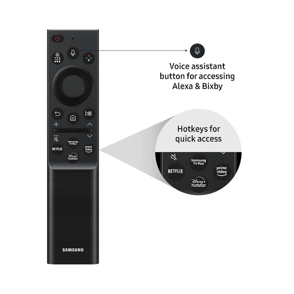- Smart TV Features : Bixby | Web Browser | SmartThings Hub / Matter Hub / IoT-Sensor FuntionalityApple AirPlay | Daily+
