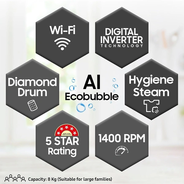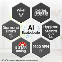 Samsung 8 kg, 5 star, Eco Bubble Technology, AI Control, Wi-Fi, Fully-Automatic Front Load Washing Machine