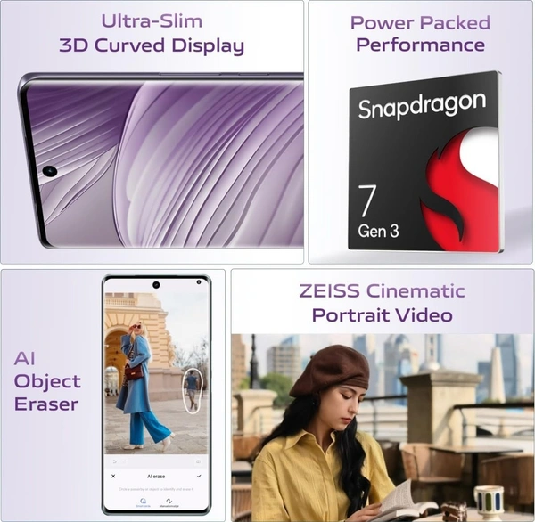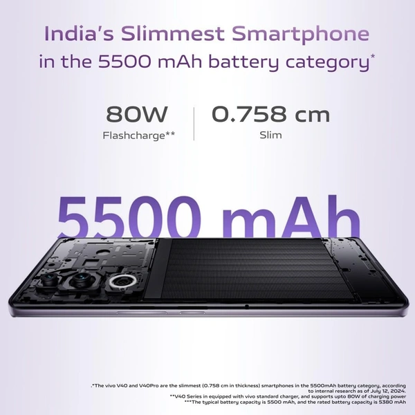 Vivo V40 5G Smartphone (Lotus Purple, 12GB RAM, 512GB Storage)