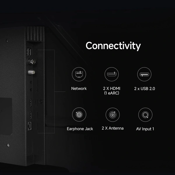 - Connectivity: Dual Band Wi-Fi | 2 HDMI ports to connect latest gaming consoles, set top box, Blu-ray Players | 2 USB ports to connect hard drives and other USB devices | ARC | Bluetooth | Ethernet