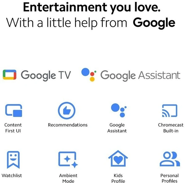 Android TV 10 | PatchWall 4 with IMDb Integration | Kids mode with Parental Lock | Universal Search | 300+ Free Live Channels | Language Universe - 15+ Languages | User Centre | Supported Apps: Netflix | Prime Video | Disney+ Hotstar | YouTube | 5000+ apps from Google Play Store | Chromecast built-in | ALLM | Hands-free Google Assistant
