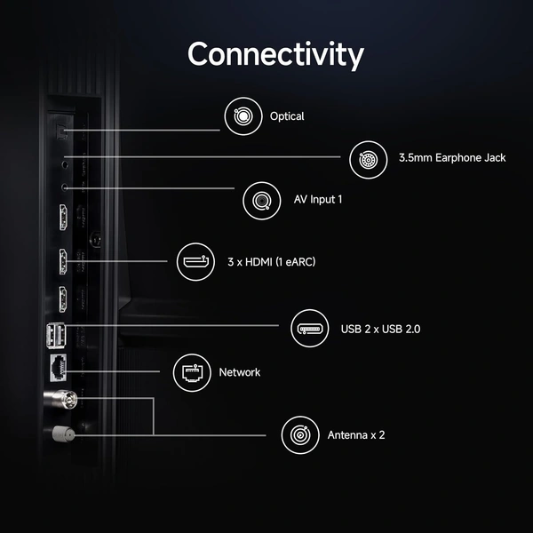 - Connectivity: 3 HDMI ports to connect set top box, Blu-ray speakers or gaming console | 2 USB ports to connect hard drives or other USB devices | Bluetooth | Built-in Wi-Fi