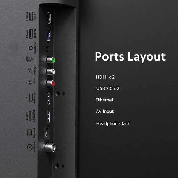 - Connectivity: Dual Band Wi-Fi | 2 HDMI ports to connect set top box, Blu-ray speakers, or gaming console | 2 USB ports to connect hard drives and other USB devices | Bluetooth 5.0 | 3.5 mm jack | AV port| Ethernet