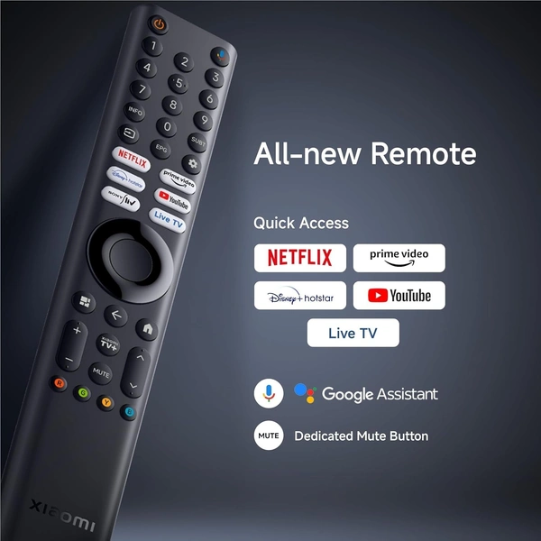 - Smart TV Features: Google TV, Built-In WiFi, Chromecast built-in, 2GB RAM, 32 GB ROM, Supported Apps: Netflix, Prime Video, YouTube, Zee5, etc., MEMC Engine , eARC (Dolby Atmos Pass-through), ALLM (Auto Low Latency Mode), and Google Assistant Operation