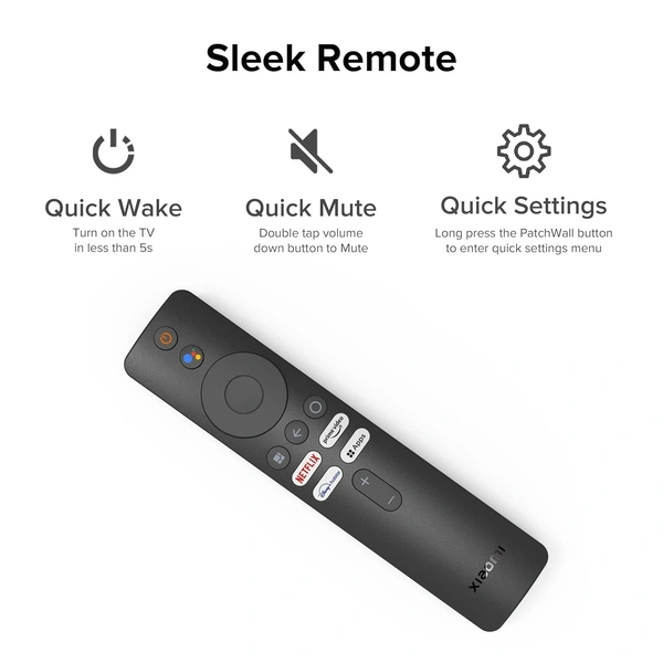 Android TV 11 | PatchWall with IMDb Integration | Kids mode with Parental Lock | Universal Search | 300+ Free Live Channels | Language Universe - 15+ Languages | User Centre | Supported Apps: Netflix | Prime Video | Disney+ Hotstar | YouTube | 7000+ apps from Google Play Store | Chromecast built-in | ALLM